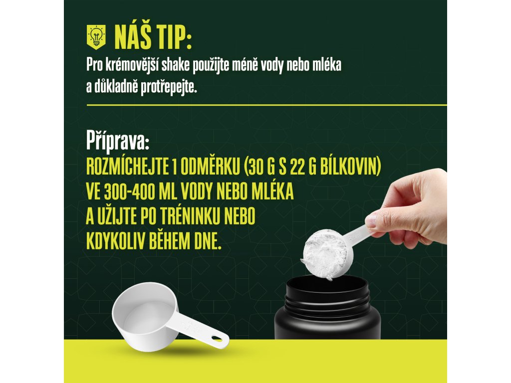 Kdy užívat? Protein si můžete dát kdykoliv během dne. Je ideální po tréninku nebo zápase pro rychlou podporu regenerace a kdykoliv potřebujete doplnit bílkoviny.