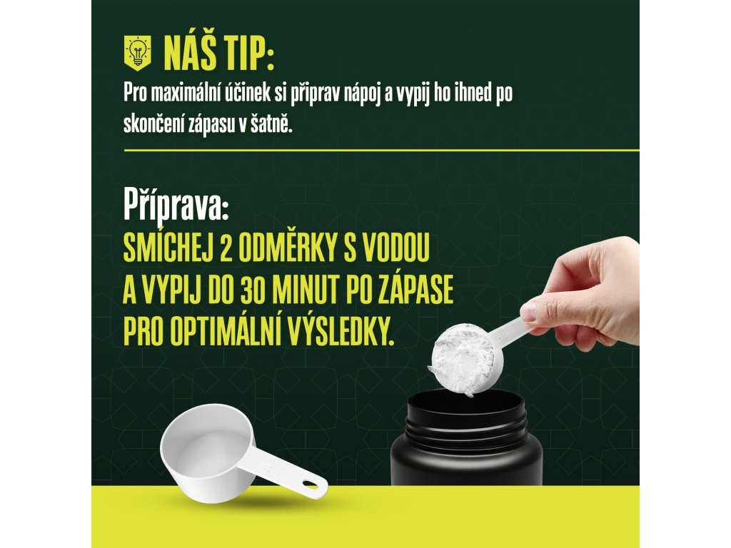 Smíchej doporučenou dávku s vodou a vypij do 30 minut po zápase. Pro optimální výsledky užívej pravidelně po každém fyzickém výkonu.